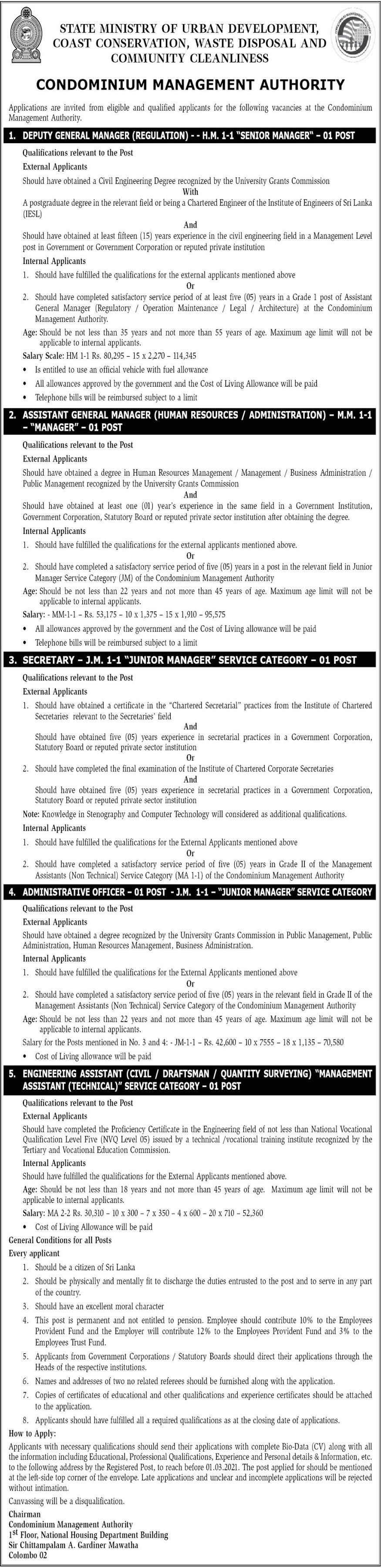 Administrative Officer and 05 More Vacancies - Condominium Managment Authority